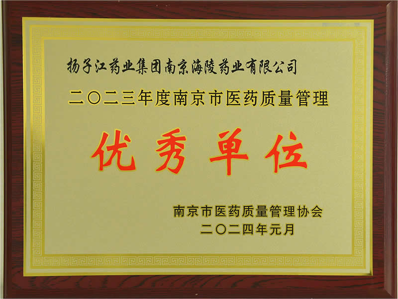 南京市醫(yī)藥質(zhì)量管理優(yōu)秀單位