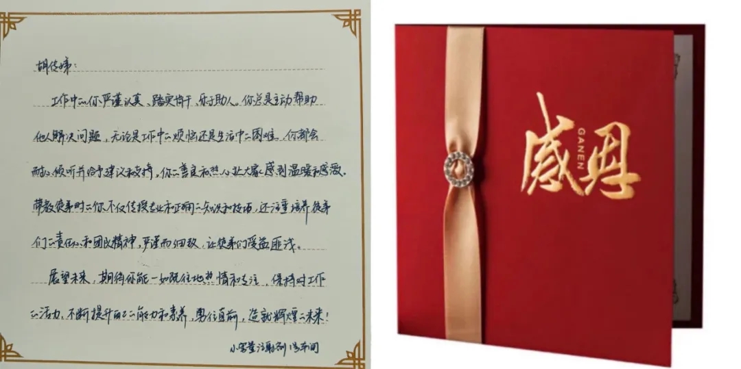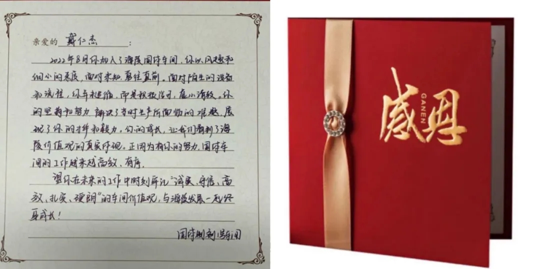 海陵衷心對他們的付出表示感謝,并為其準備了感恩卡和禮物,直屬領(lǐng)導“驚喜出現(xiàn)”,將手寫感謝卡和禮物交給他們!