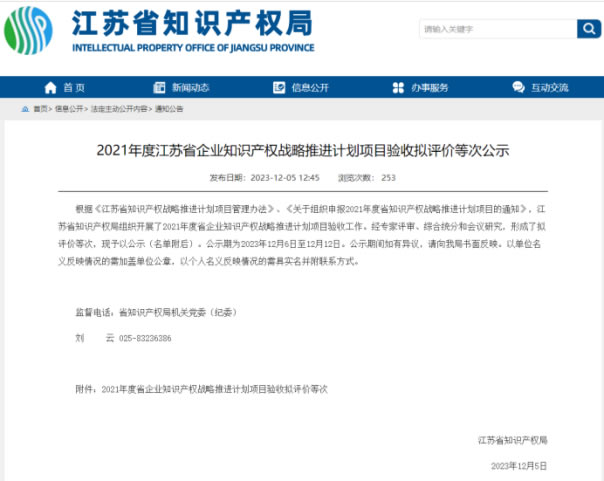 近日,江蘇省知識產(chǎn)權(quán)局公示了江蘇省企業(yè)知識產(chǎn)權(quán)戰(zhàn)略推進(jìn)計劃項目驗收擬評價等次名單,南京海陵成功通過項目驗收,為企業(yè)高質(zhì)量發(fā)展奠定基礎(chǔ)。