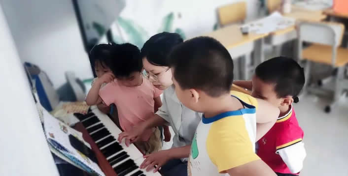 今年活動期間,老師結(jié)合孩子們的喜好,開發(fā)了音樂啟蒙系列課程。在一系列歌曲教學和音樂游戲中,孩子們邊玩邊學,逐漸掌握了樂器、音符、音調(diào)、節(jié)奏、情緒等基礎樂理知識。