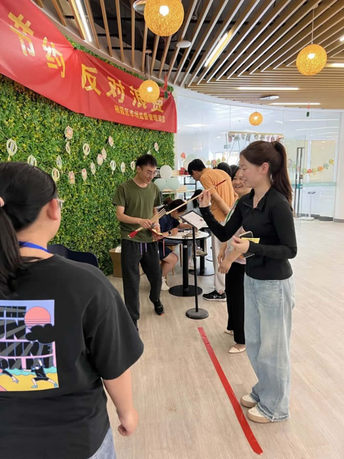 投壺也叫“射壺”,是古代士大夫在宴飲時(shí)所做的一種投擲游戲,是一種從容安詳、講究禮節(jié)的活動(dòng)。投壺小秘訣:在投擲時(shí),保持平衡,雙腳分開(kāi),身體重心向前,眼里和手感是重中之重。這個(gè)游戲可以鍛煉大家的動(dòng)手能力和專注力,在投壺的同時(shí)也能培養(yǎng)大家的判斷力及準(zhǔn)確性,是一項(xiàng)充滿趣味和挑戰(zhàn)的游戲。萬(wàn)萬(wàn)沒(méi)想到我們員工中誕生的神射手就是一箭三聯(lián)的方練。