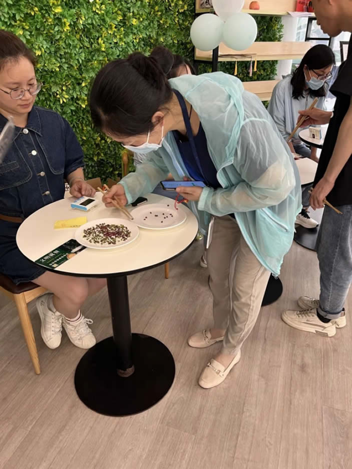 紅豆生南國(guó),春來(lái)發(fā)幾枝。這蜜豆不是普通的蜜豆,是王維詩(shī)里面的蜜豆。夾蜜豆可是對(duì)手穩(wěn)有很高的要求的,打飯愛(ài)“手抖”的員工可要注意啦,手一抖將前功盡棄。夾蜜豆要領(lǐng):手穩(wěn)、氣平、心態(tài)好。大家還記得當(dāng)時(shí)自己夾了幾顆蜜豆嗎?而夾到最多蜜豆獲得蜜豆王稱號(hào)的就是收獲滿滿35枚小蜜豆的楊新悅。