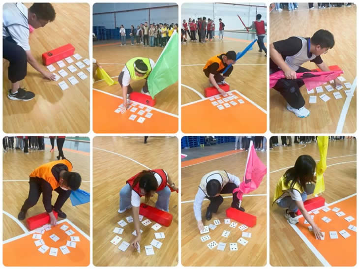 活動正式開始!“超音速”率先成為大家團隊磨合的項目。各隊成員你來我往,奮力奔跑。起先,大家還沒領(lǐng)悟到比賽訣竅,只是想著自己以最快的速度往返翻牌。隨著賽程推進,各隊紛紛意識到溝通的重要性,紛紛形成了以記錄員為圓心的“討論組”。隨著各隊對牌面分布的逐漸明晰,比賽也進入白熱化的“沖刺階段”,并很快角逐出排名!